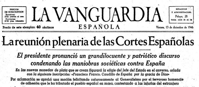 En diciembre de 1946, las Cortes hablan de las nuevas monedas de plata con la Efigie del jefe del estado.