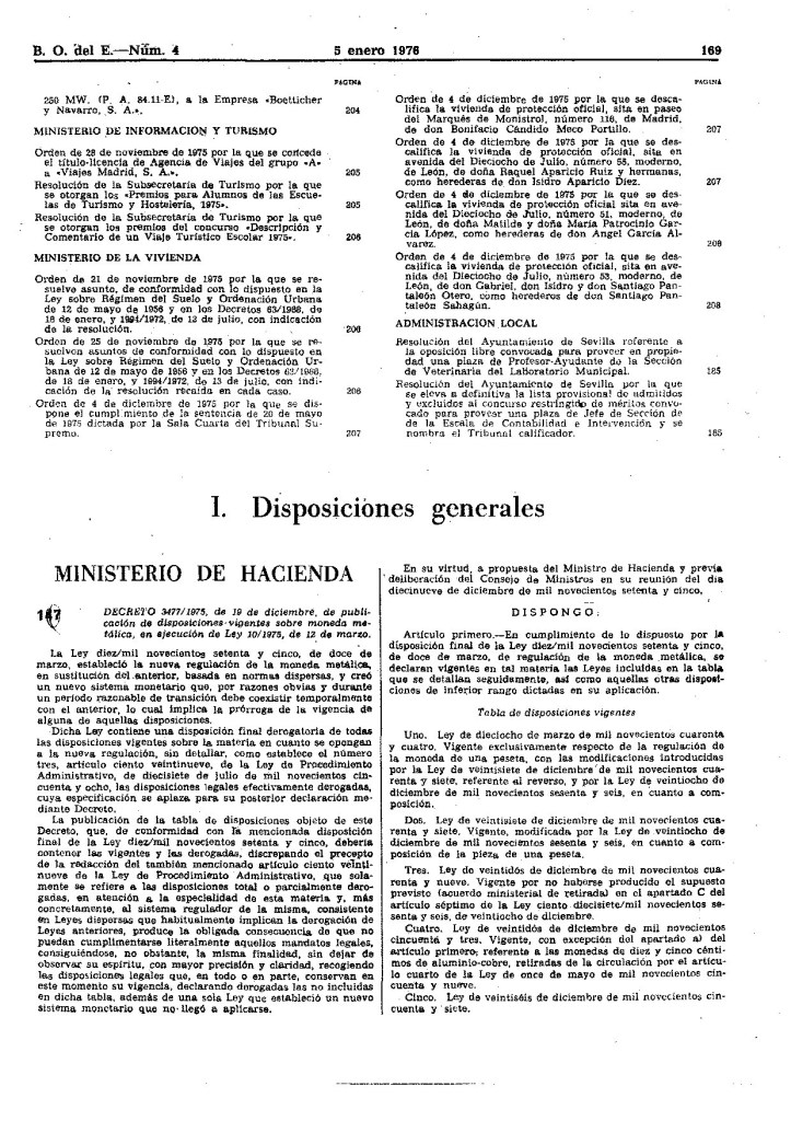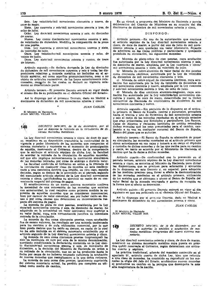 La derogacion de la Ley de 18 Diciembre de 1946 que establecia el nuevo Sistema Monetario, aparece recogida en el BOE del 5 de enero de 1976