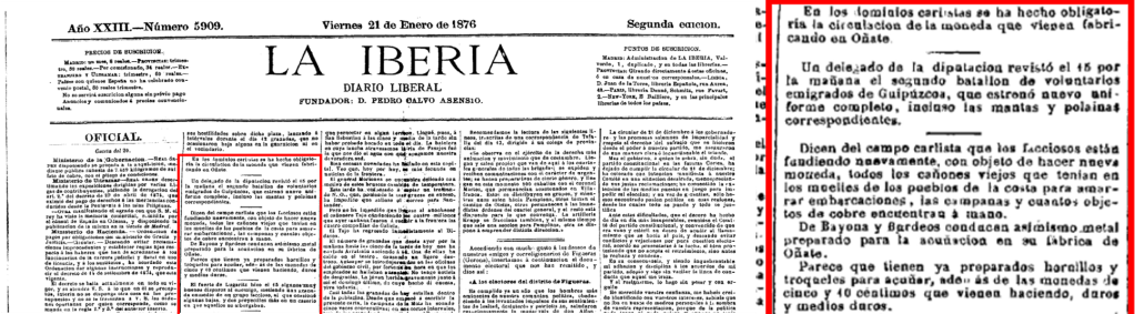Hemeroteca Digital – La Iberia – 21 enero de 1876