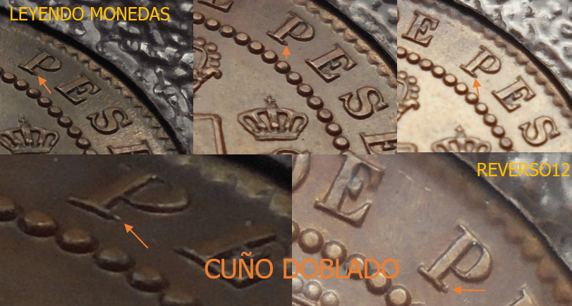 La Sigla P, esta Doblada en el cuño. La base de la P, donde señala la flecha, muestra la no coincidencia entre Hincados de la matriz.