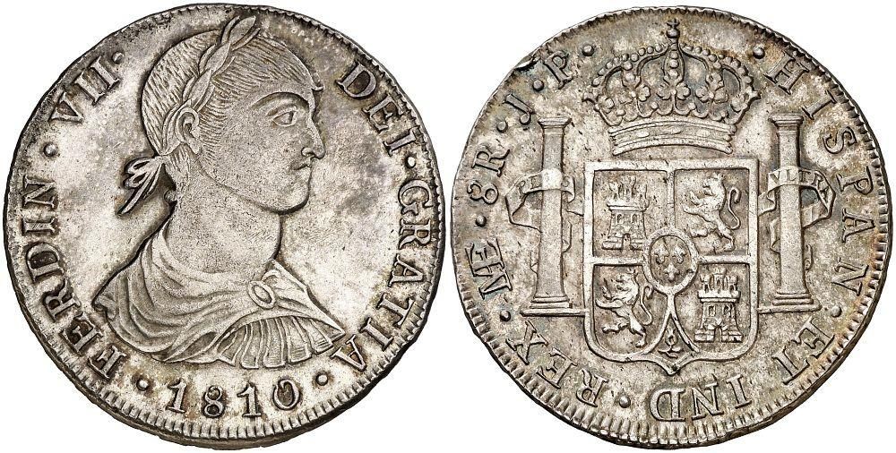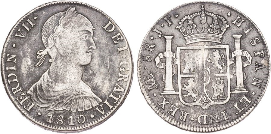 Aureo & Calicó Subasta 268. 03/06/2015. 1810. Fernando VII. Lima. JP. 8 reales. (Cal. 475). Busto indígena. Pátina atractiva. Escasa. 26,75 g. EBC-.Aureo & Calicó Subasta 262. 18/09/2014. 1810. Fernando VII. Lima. JP. 8 reales. (Cal. 475). Busto indígena. MBC+.
