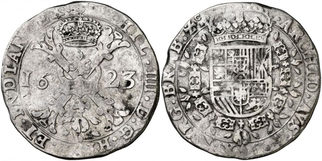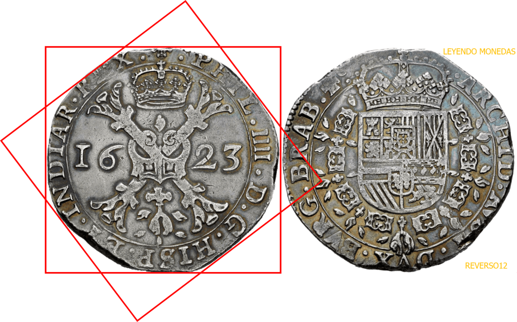 Cada moneda, tiene su propio proceso de acuñación. Puede o no ser igual, o parecido al de otras monedas acuñadas en la misma Ceca, u otras Cecas. Hay que tener en cuenta, que cada Ceca, tiene su propia organización y metodología de acuñación (Trabajo). Tampoco debemos olvidar, las circunstancias del momento, y los recursos tanto humanos (mano de obra y conocimiento), como materiales, con que cuenta una Ceca en cada momento en que se acuña una determinada moneda. A continuación veremos unos bellos Patagones, de la Ceca de Bruselas, acuñados en 1623, durante el reinado de Felipe IV. Su forma irregular, y sus relieves acuñados, nos van a explicar, como fue, una parte de su proceso de acuñación.