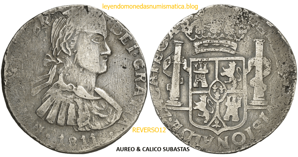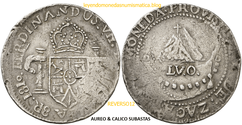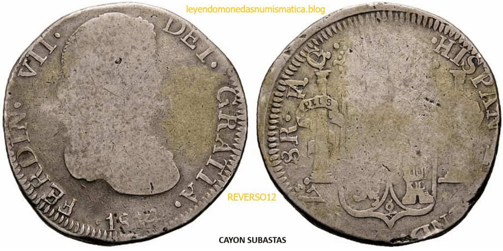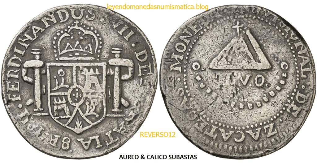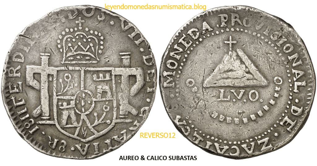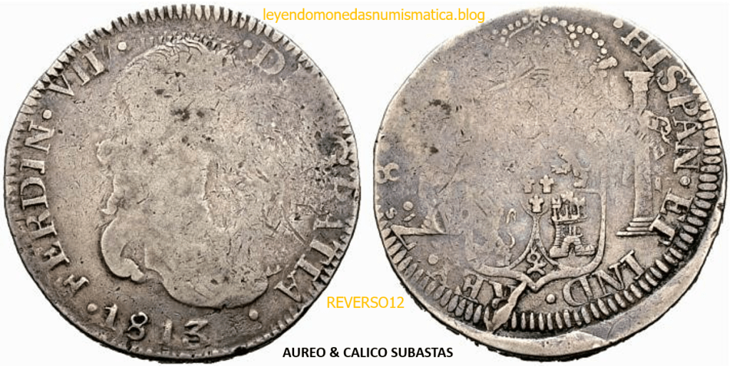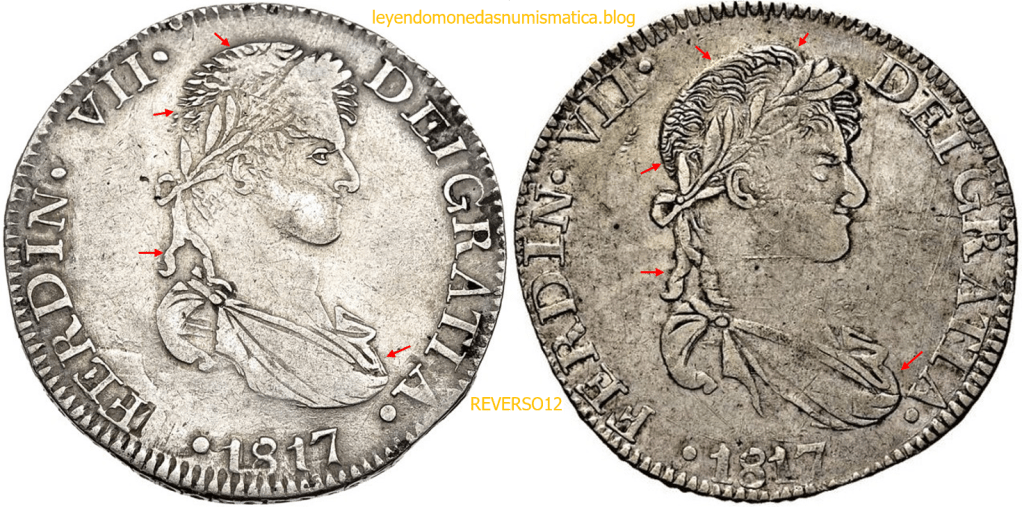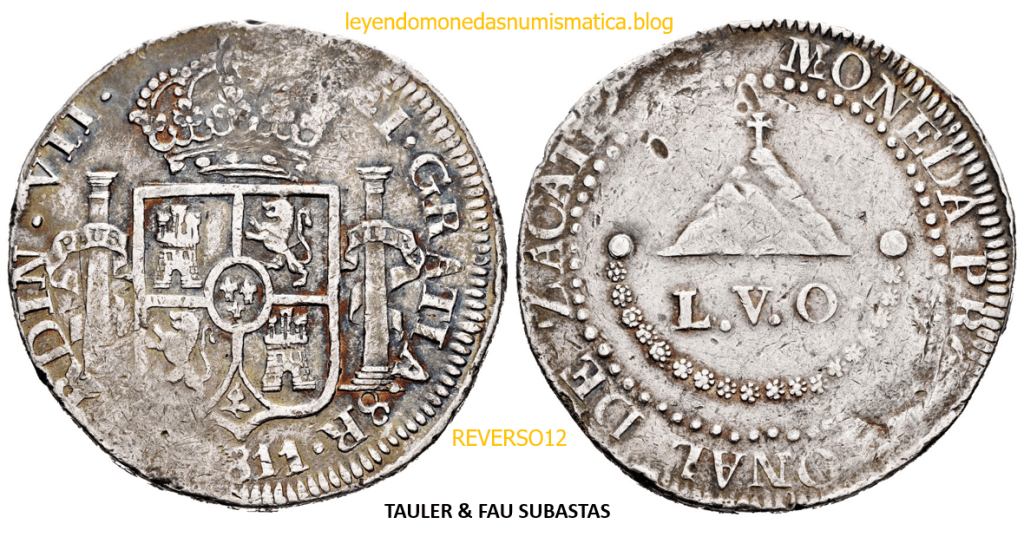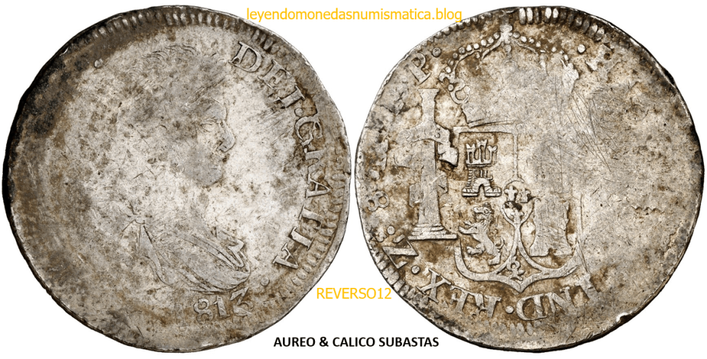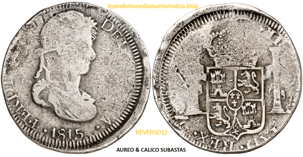 Con fecha 1822, se acuño, el ultimo Real de a 8 con el Busto de Fernando VII. Se trata de una ceca y de un período difíciles de estudiar, con graves dificultades para acuñar moneda, de ahí la cantidad de variantes, diferencias y problemas de acuñación. Hay diferencias en las letras, su diseño, tamaño, errores en la leyenda, errores de hincado,…8 REALES FERNANDO VII ZACATECAS. ELABORACION DEL CUÑO. En el busto suele haber bastantes variantes, sobre todo en las perlitas ( posición y diseño) de la diadema (los madroños de la laurea). También hay diferencias por el hincado del Busto (punzón), a veces no coincide el Hincado ( Cuño doblado). Otras, hay retoques por un mal hincado, una posición incorrecta del busto en el cuño, retoques en el cuño, por reutilización de cuños (cuños gastados, aprovechamiento de cuños…). Igualmente, la acuñación del cospel, puede dar lugar a diferencias en los relieves, debido a factores como la presión/funcionamiento/ mantenimiento de la maquina, la maleabilidad del cospel, ( aleación, calentamiento, grosor,…),… Las piezas acuñadas con anterioridad a 1819 suelen estar bastante mal acuñadas. A continuación, veremos algunas de las piezas acuñadas en La Ceca de Zacatecas desde 1810 a 1820.