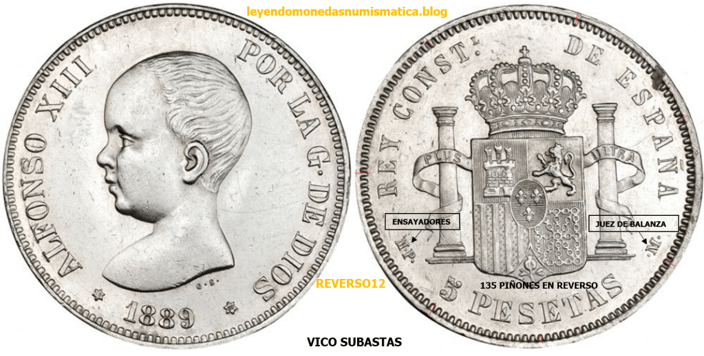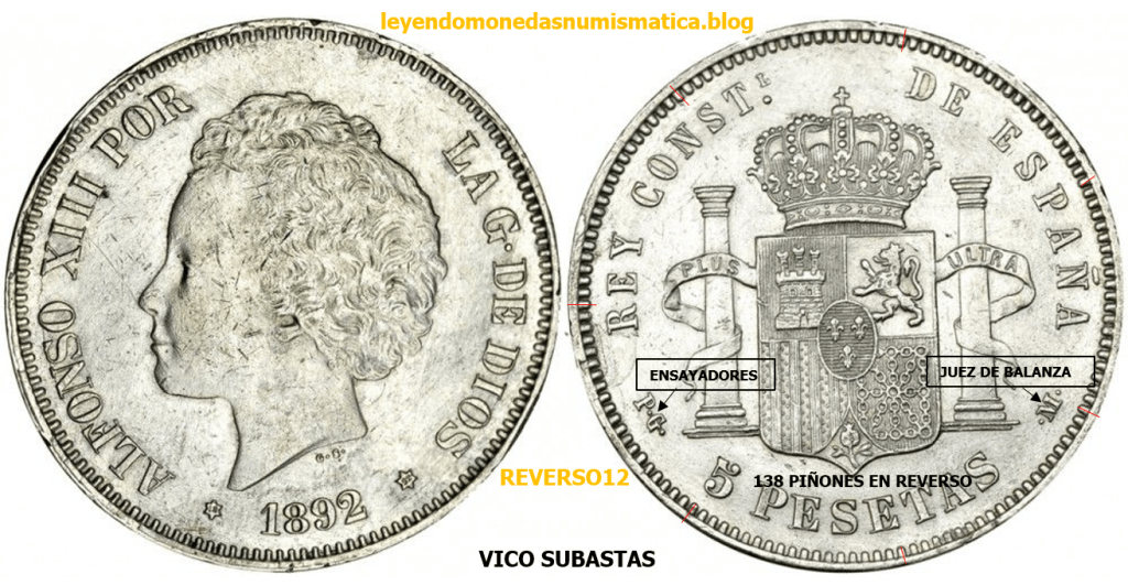 Costes; eficiencia y eficacia (Empresa) Reverso: 1877 DEM hasta 1894 PGV, todos los duros acuñados de Alfonso XII y Alfonso XIII en el periodo que va entre esos dos duros, tienen el mismo reverso. Obviamente cambia los ensayadores y juez de balanza. La mayoría de ellos tienen 138 perlas/dientes/piñones en grafila. En 1896, cambia el reverso, en los últimos duros que se acuñan en plata a finales del siglo XIX (96, 97, 98 y 99).