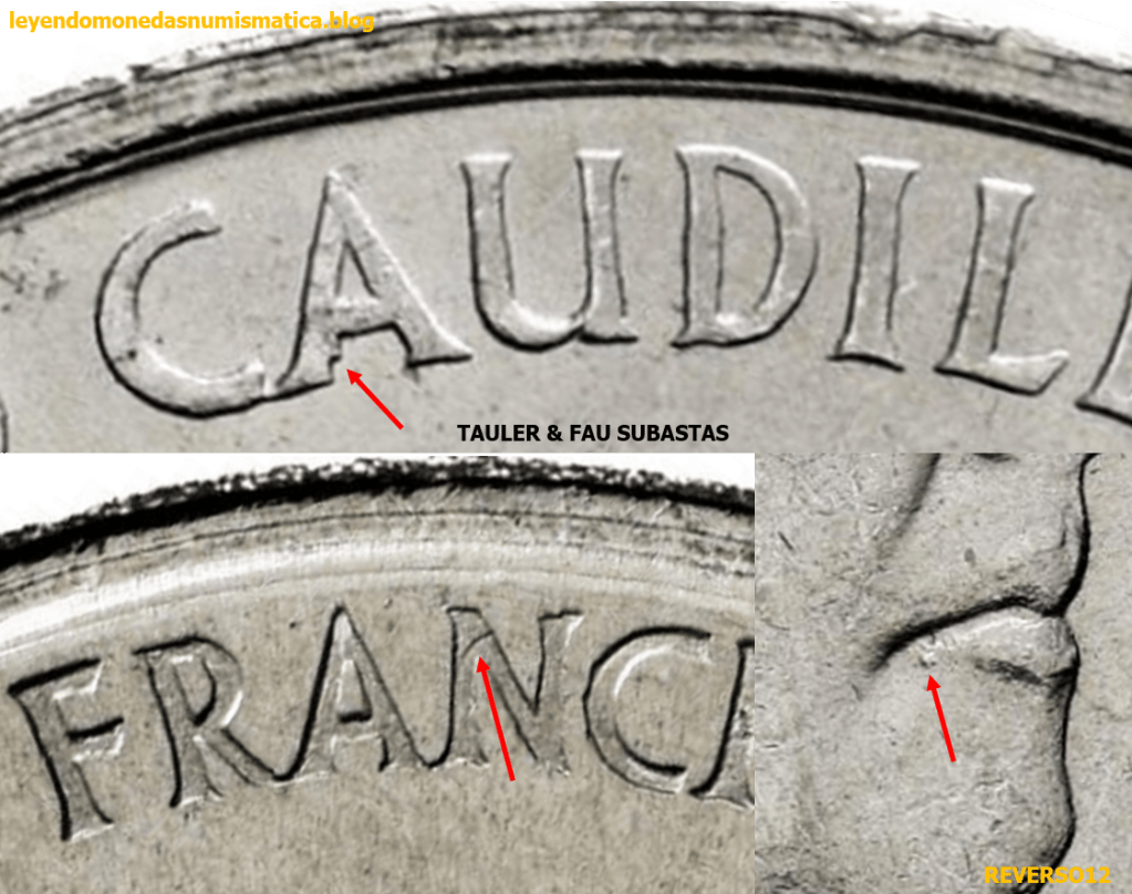 2. Señor Roberto solo estudio los cuño de las Monedas de Palo Recto o la de Todos los años de la moneda 1966 de plata. Porque lo del fallo en la letra A de Caudillo las Monedas del 1966(70) tambien lo tienen. Si es verdad que hay dos cuños de Palo Recto uno con el puntito debajo el l’avió y otro sin. Un saludo