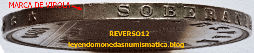 2) Virola partida; se compone de tres segmentos, que juntos forman un círculo. Ello conlleva, que en el canto de la moneda, aparezcan tres líneas verticales en relieve, fruto de la separación de los tres segmentos, una cada 120º. Son llamadas Marcas de Virola. Una virola segmentada, puede transmitir tanto altorrelieves como diseños incusos. https://siemprenosquedaralan.wixsite.com/home/cont-isabel2-20r