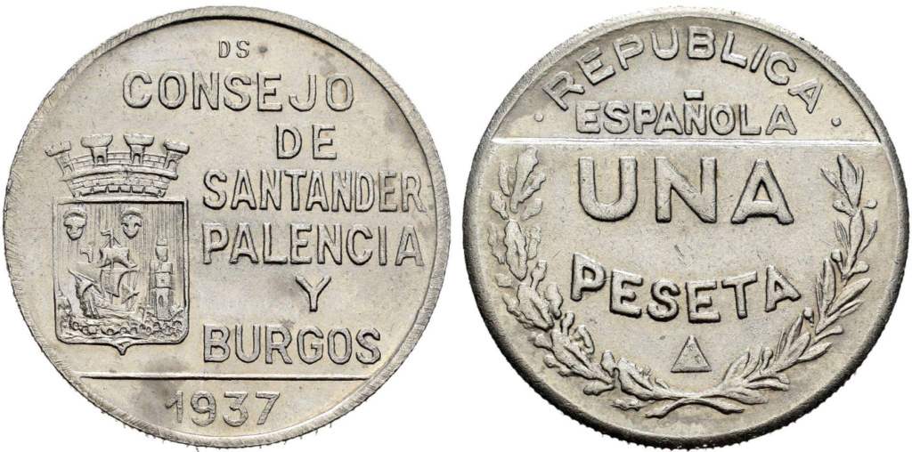 1 Peseta 1937 Consejo Santander Palencia y Burgos – Guerra civil. Cuño Doblado.