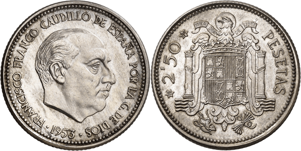 2´50 Pesetas 1953*(19-66). Estado Español. EL CUÑO DE ANVERSO.