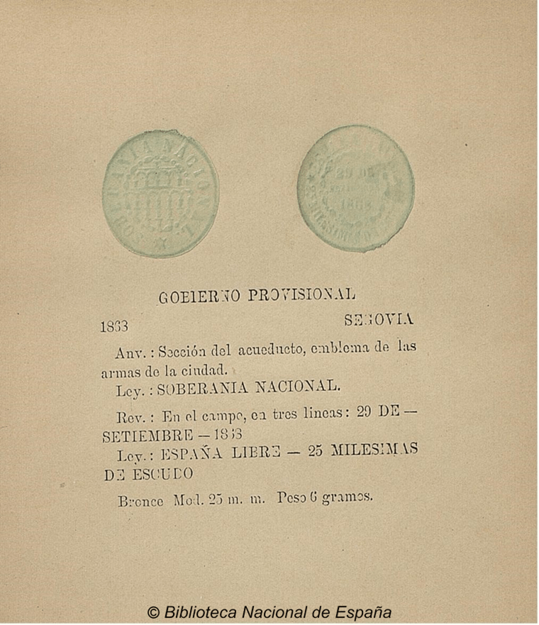 Un comentario en “25 Milésimas de Escudo. 29 de Septiembre 1868. Gobierno Provisional. Segovia.