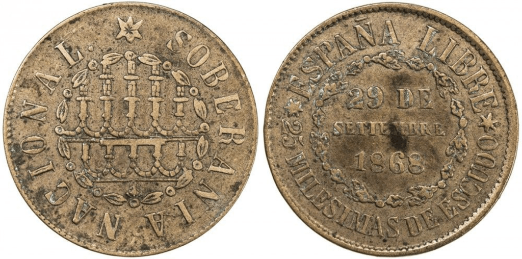 https://www.imperio-numismatico.com/t54168-25-milesimas-de-escudo-29-de-septiembre-1868-gobierno-provisional-segovia-reproduccion-actual
