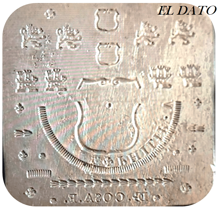Los punzones se obtenían de una matriz (bajorrelieve). La matriz recogía los motivos/ elementos del diseño, las siglas de la leyenda, rosetones, leones, castillos, grafila, el canto (hojas de laurel),… De la matriz surgía el juego de punzones para el cuño de anverso y reverso, para después retocarlos, y endurecerlos para su uso. Los cerrillos (Cerrilla),que troquelaban el canto de los columnarios, se elaboraban igualmente a través del hincado de un punzón. LA CERRILLA. La Costura. ACUÑACION A VOLANTE SIN VIROLA. El Canto del Real a 8 Peninsular y de las Indias.