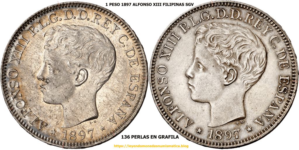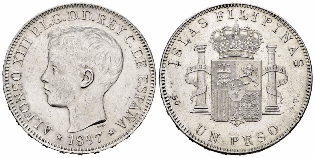 Los dos Pesos de Ultramar, 1 Peso de Puerto Rico y el Peso de Filipinas, comparten el mismo Busto de anverso. El Busto de Alfonso XIII, que fue elaborado para el Peso de Puerto Rico en 1895.