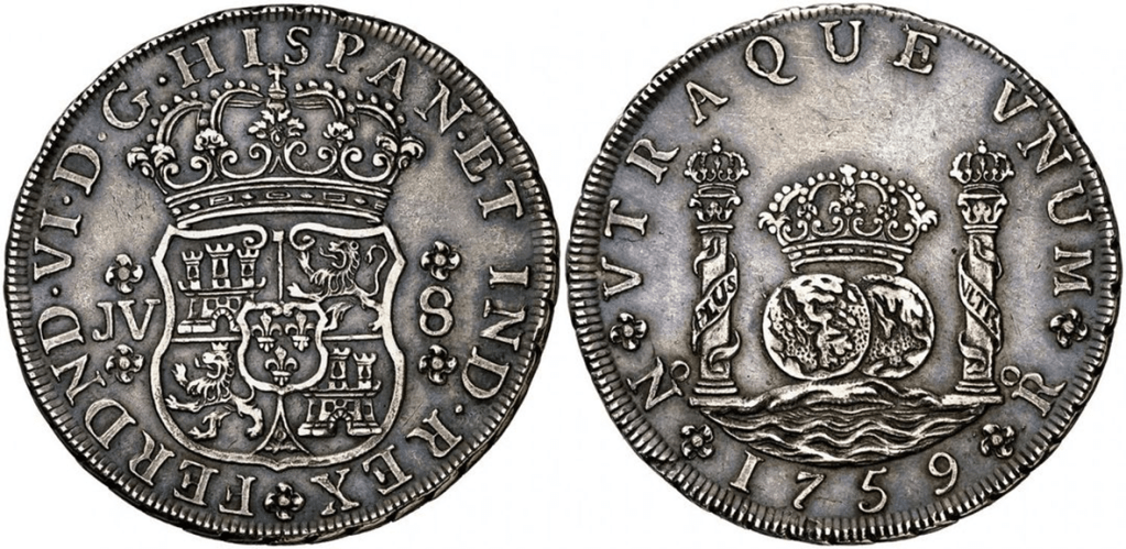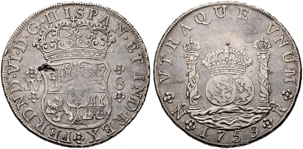 https://moneditis.com/2015/04/22/8-reales-nuevo-reino/ – 8 Reales 1760 Carlos III.