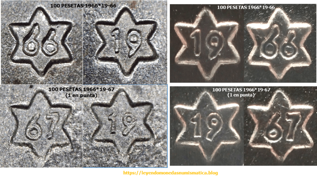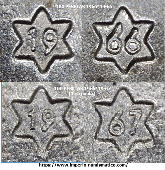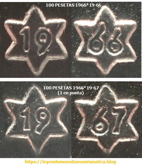 El diseño de las estrella es el mismo – 100 PESETAS 1966*19-67. LAS ESTRELLAS.