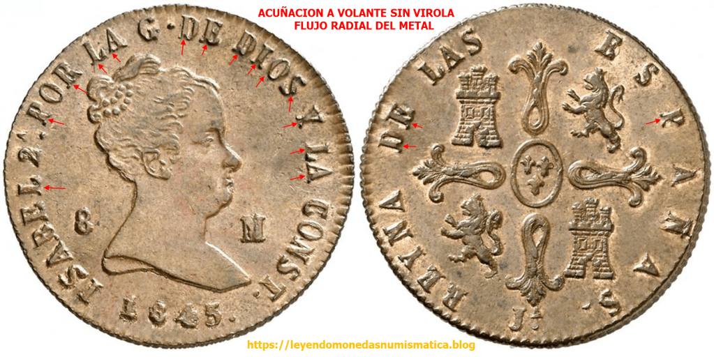 Puntos que delatan la acuñación a Volante sin restricción de metal (Virola)