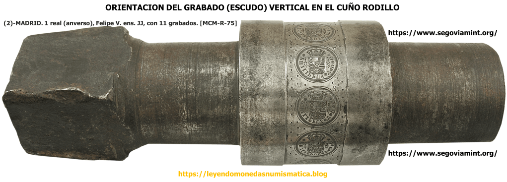 En 1726 encontramos en los reales de a 1 madrileños, dos orientaciones en los cuños rodillo. El real de a 1 acuñado en 1721, su orientación era horizontal en el Cuño Rodillo, de ahí, que al rectificar la fecha en el Cuño Rodillo de reverso, para aprovecharlo (economía), este mantenga la orientación de cuando se elaboró.