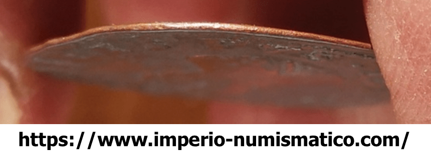 Hay diferencias en el diseño de los relieves, aunque no sean concluyentes, llaman la atención, al igual que el busto y otros detalles ( Corona, grafila, tamaño y diseño de algunos relieves,…). Los relieves señalados como la N, la M, la S, la marca de ceca (MD),…