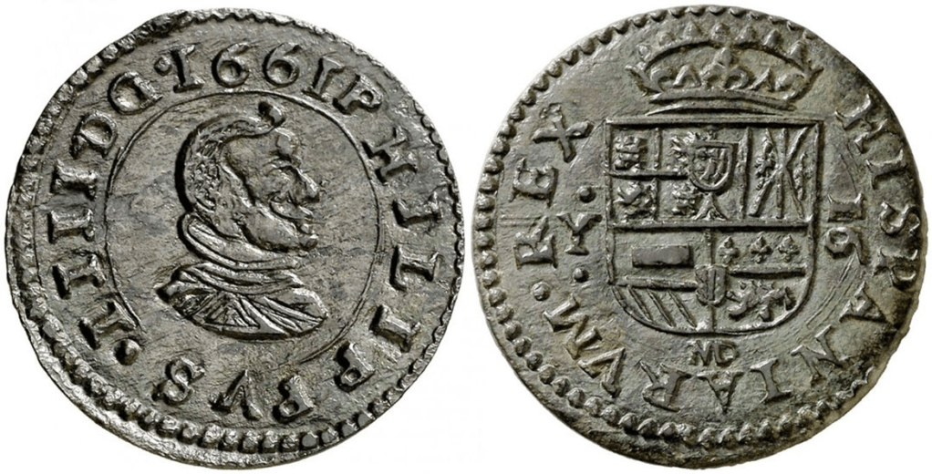 Pieza 1 – 16 Maravedís 1661. Felipe IV. Y. MD.