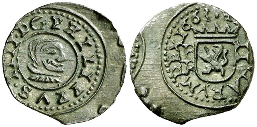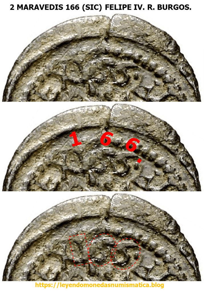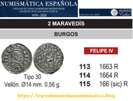 La pieza alcanzó los 270 euros. Acuñada a Molino durante el Reinado de Felipe IV, en la ceca de Burgos. La pieza presenta un error en la fecha. La fecha no esta completa. El ultimo dígito de la fecha no se hinco en el cuño Rodillo. Es un error que se produce durante la elaboración del grabado en el Cuño Rodillo. En principio, el resto de grabados del Cuño Rodillo de reverso deberían tener la fecha completa.