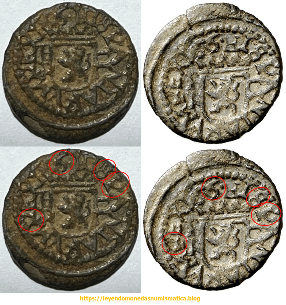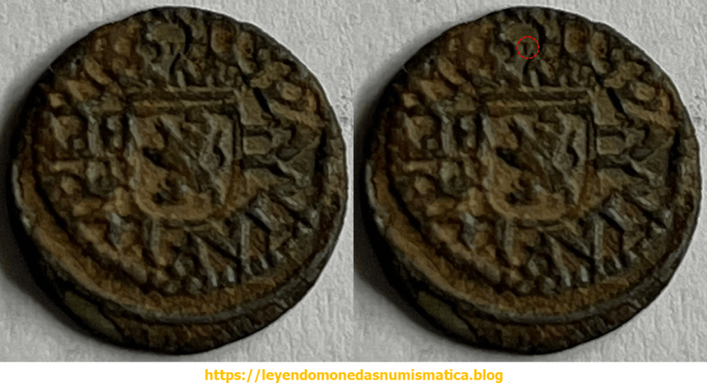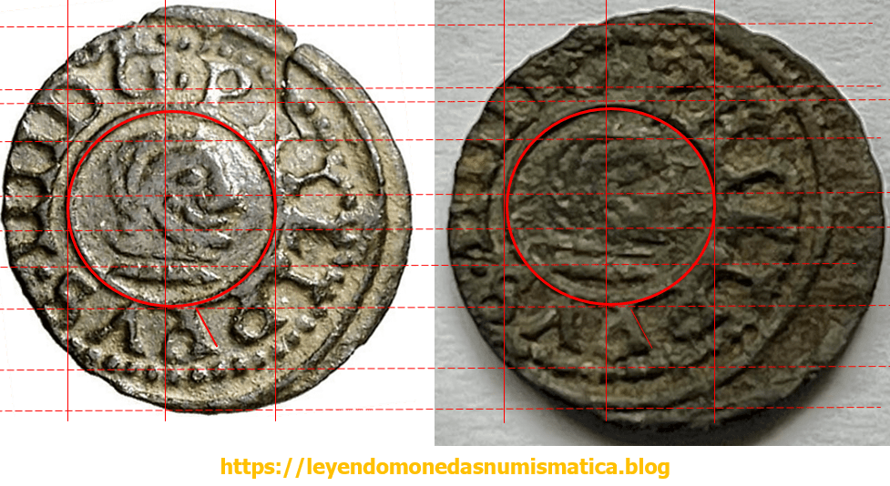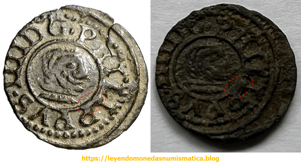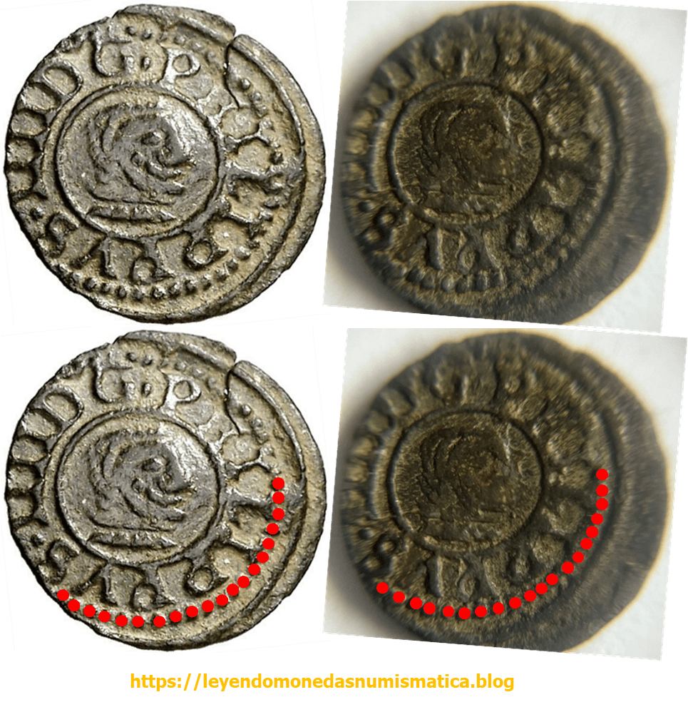 Para leer monedas, es obvio, que el estado de conservación de la pieza es muy importante. Circulación, limpiezas,…muchas veces impiden sacar conclusiones. Esta pieza no es fácil de leer. Comparare ambas piezas, pues no conozco otras piezas que pudieran aportar mas información.
