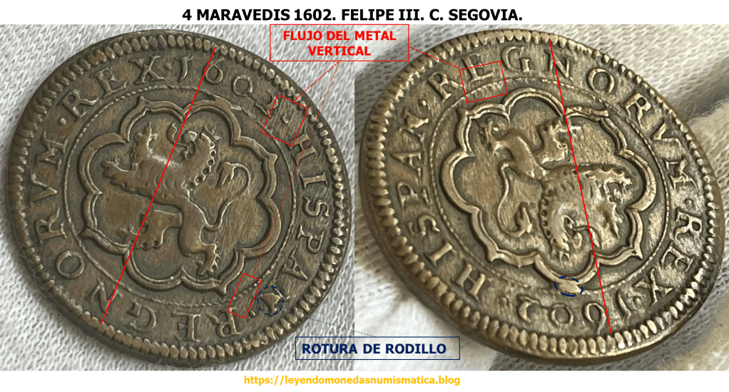 Los siguientes rodillos, aunque sean matrices Rodillo, tienen unas lineas en bajorrelieve similares a las que vemos en los 4 Maravedís 1602.