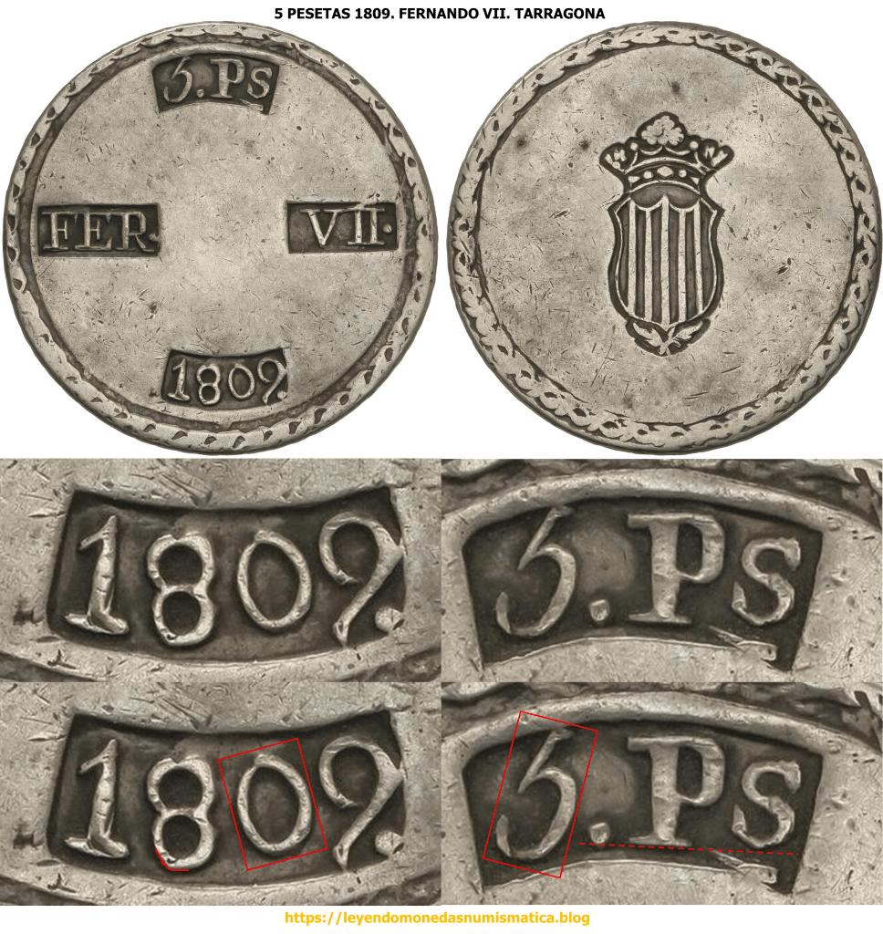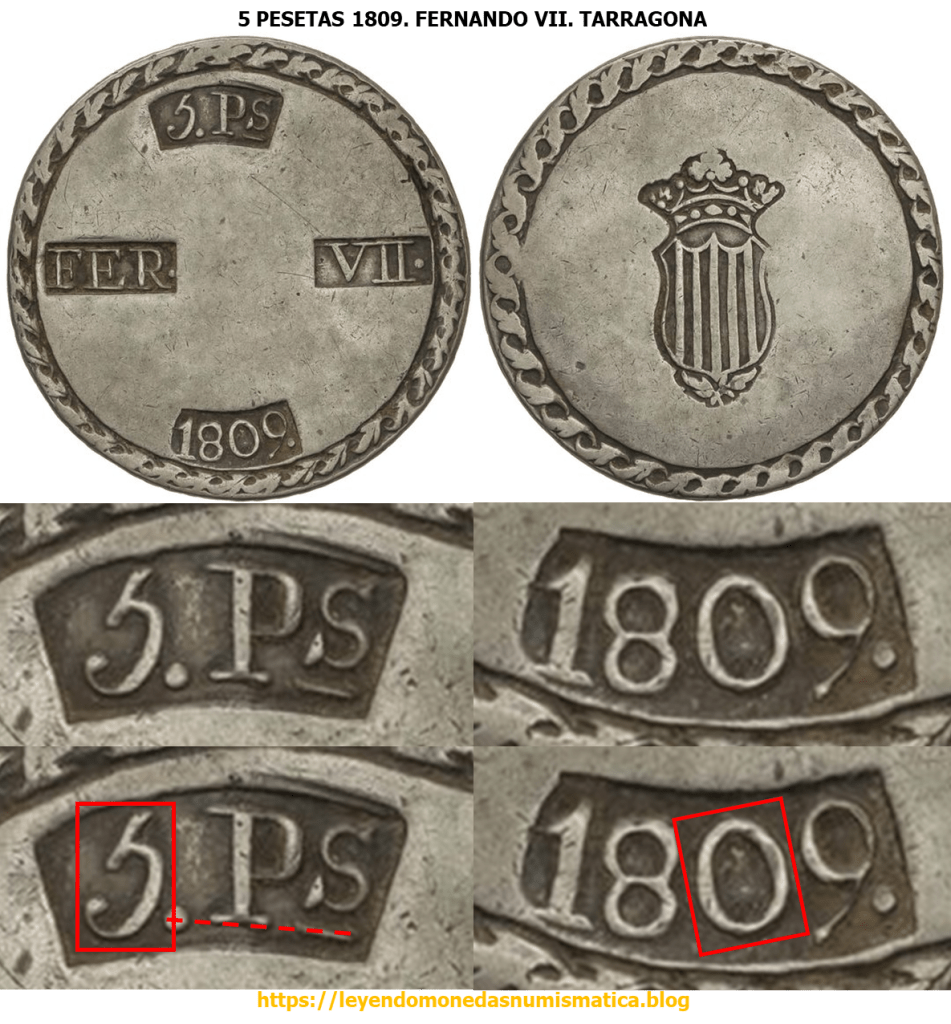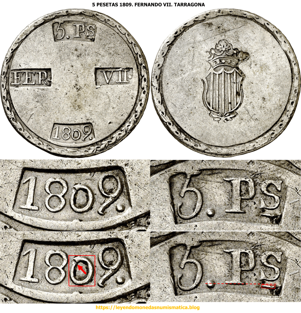 2 comentarios sobre “5 PESETAS 1809. FERNANDO VII. TARRAGONA. Punzón 5. PS / 1809.