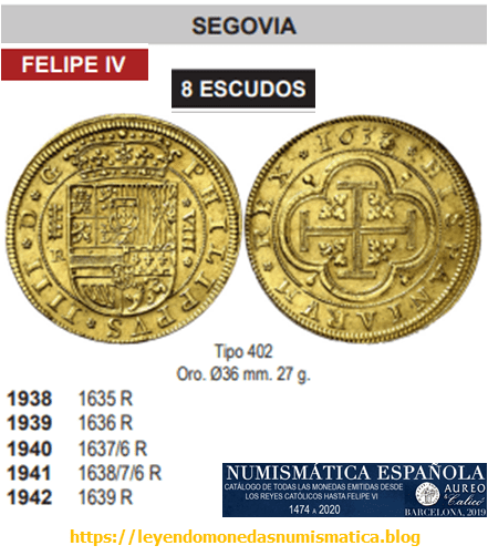 En el estudio de los Doblones de a 8 de Ignacio Gutierrez Delgado, encontramos entre sus paginas las piezas Segovianas de Felipe IV. Su libro;
