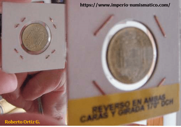7) La peseta con Doble Reverso tiene un error de giro y de colocación de uno de los troqueles. La Alineación de esta y otras pesetas, es Alineación Moneda. Es decir, el reverso y el anverso están girados a 180º. https://coleccionismodemonedas.com/alineacion-moneda-medalla/