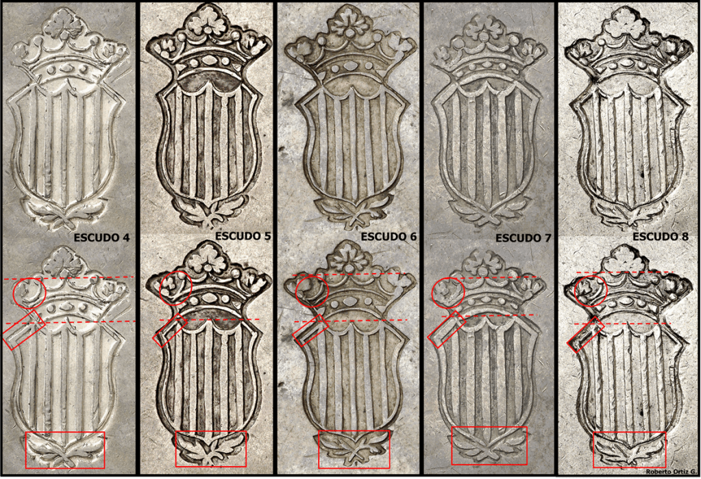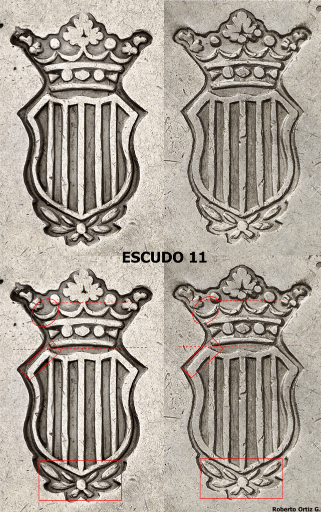Un error en el hincado del Punzón Doble (pareja sellos), delata que el punzón utilizado estaba formado por dos sellos, el punzón doble se hincó invertido.