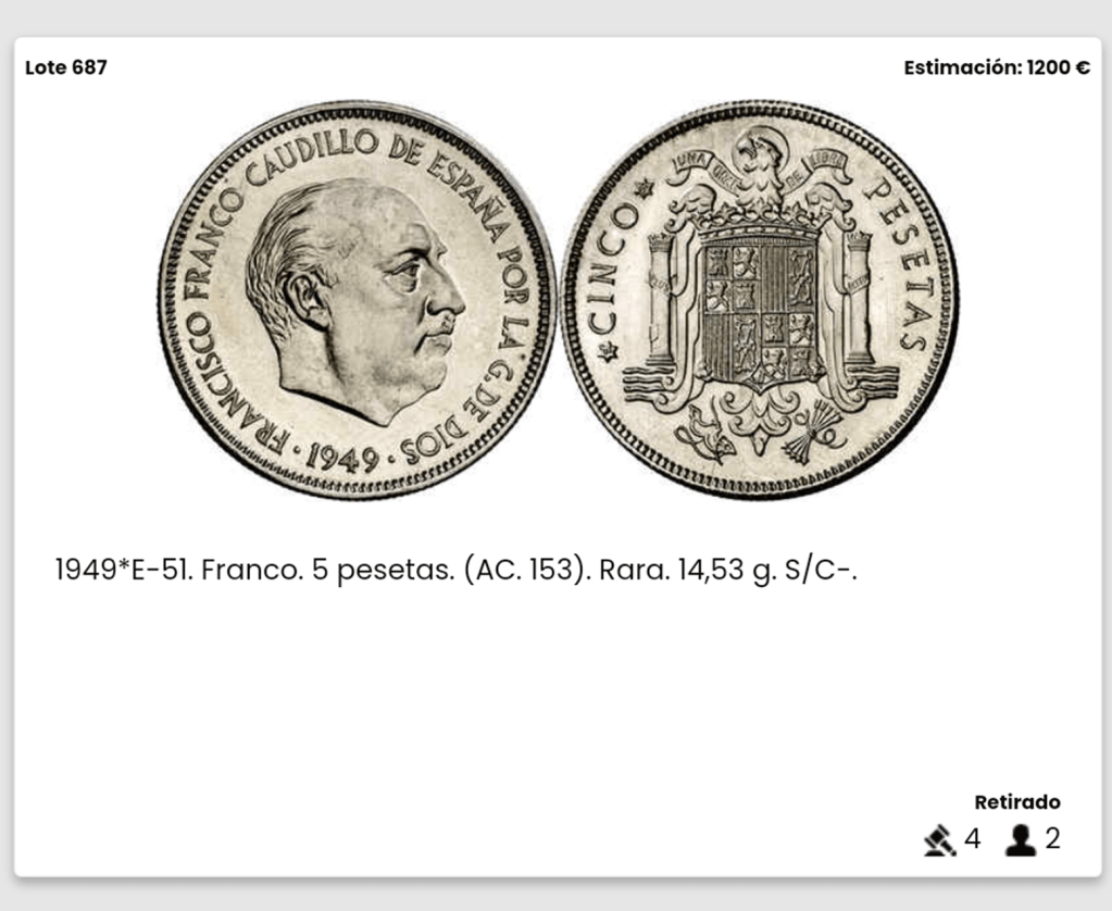 ¿Por que la Casa de subastas ha retirado la moneda de 5 pesetas 1949*E-51?.