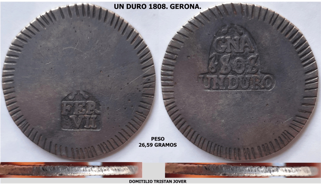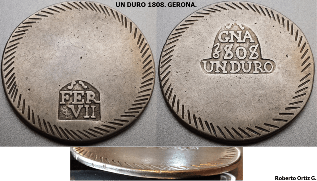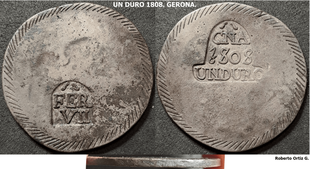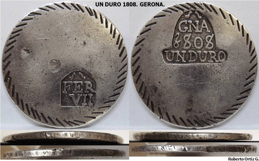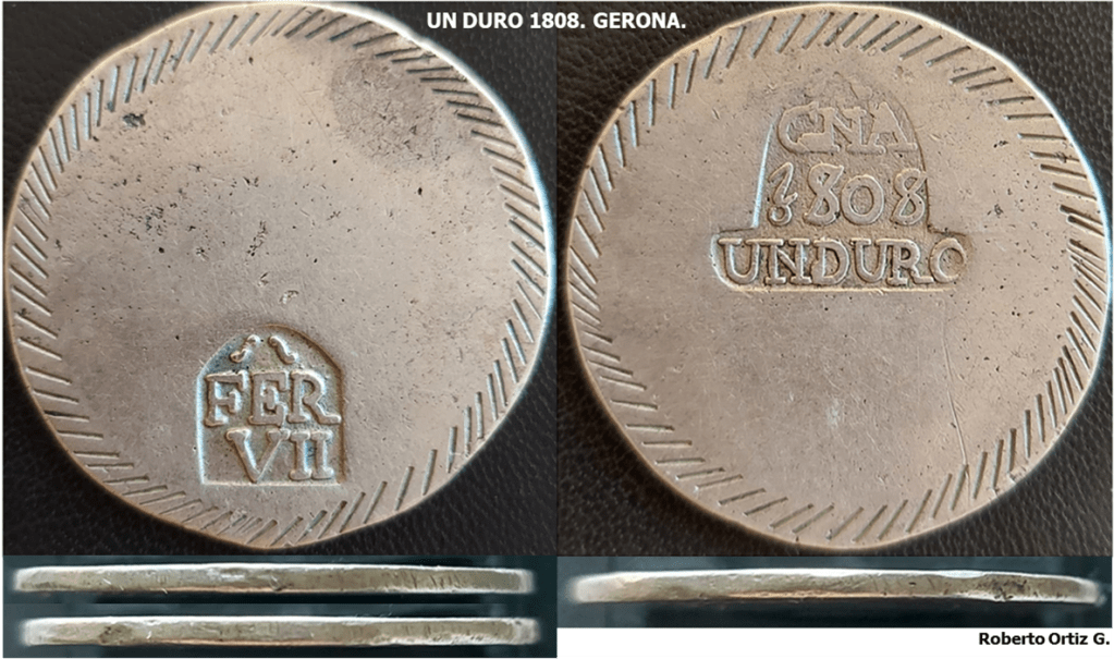 En UN DURO. 1808. FERNANDO VII. GERONA. Parte 1. y UN DURO. 1808. GERONA.Parte 2. leíamos un Duro 1808 de Gerona.