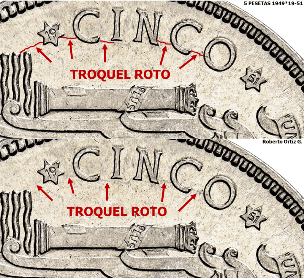 2) La magnitud de la rotura, en principio, varia con el uso del troquel, es decir, con cada acuñación de cospel. https://blognumismatico.com/2015/11/05/errores-correlativos/