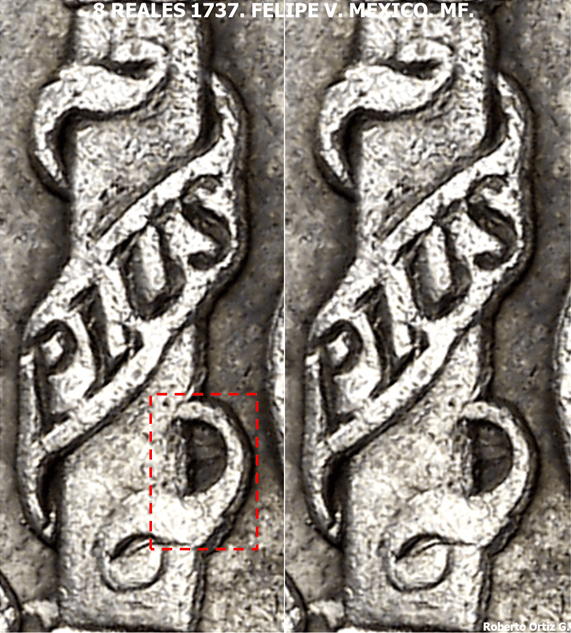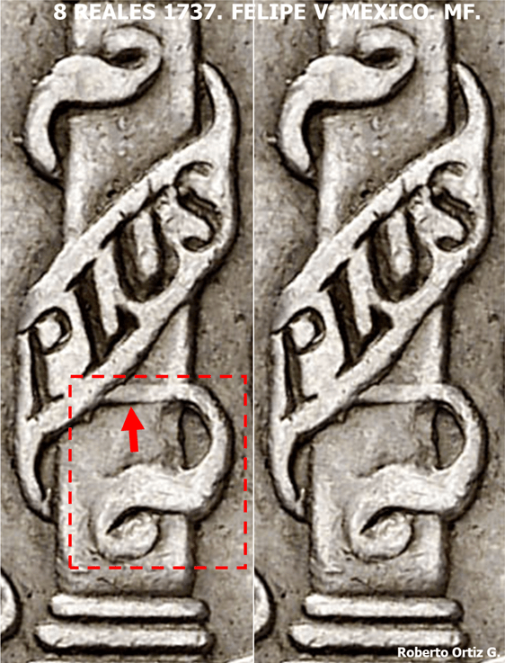 Las siguientes piezas, fueron acuñadas a Volante en México en 1737, durante el reinado de Felipe V. Encontré las siguientes variantes, respecto a la Cartela PLUS.