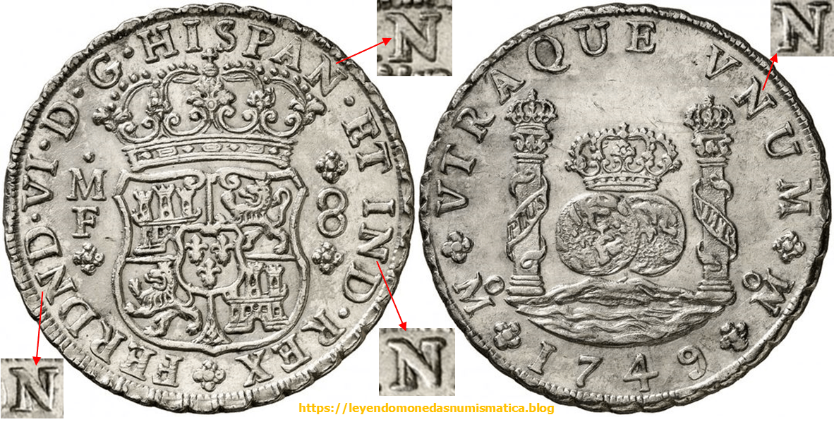 Los columnarios se acuñaban en prensa a volante. El canto se cerrillaba en la máquina de acordonar. Los cuños de estas piezas se elaboraban mediante el hincado manual de punzones. Por ello, los cuños se reconocen por la posición/orientación de los relieves. 8 REALES COLUMNARIOS. 1749. FERNANDO VI.MEXICO. EL CUÑO DE REVERSO. 8 Reales Columnarios. 1739.Sigue leyendo «Los COLUMNARIOS de FELIPE V. MEXICO. LAS SIGLAS (PUNZONES).»