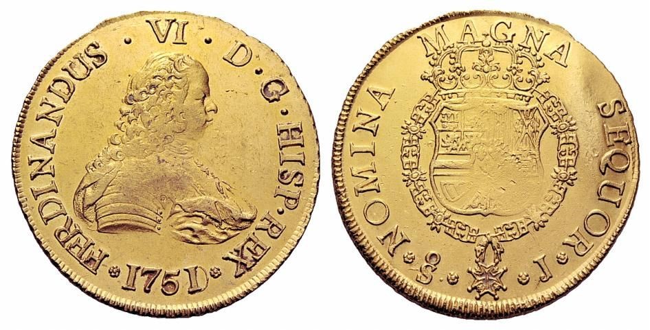 8 ESCUDOS 1751 FERNANDO VI SANTIAGO. Cuños.