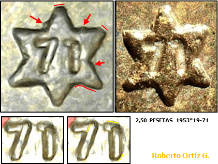 La pieza de 2´50 Pesetas 1953, estaba incluida en las tiras para coleccionistas de 1968, 1969, 1970 y 1971. La estrella 70, de 2,50 Pesetas 1953*19-70, la leímos en – 2,50 Pesetas 1953, Estado Español. Los DOS REVERSOS La estrella 71 Una imagen del diseño de la estrella y de sus digitos. La estrella presenta excesosSigue leyendo «2,50 PESETAS 1953*19-71. LA ESTRELLA 71.»
