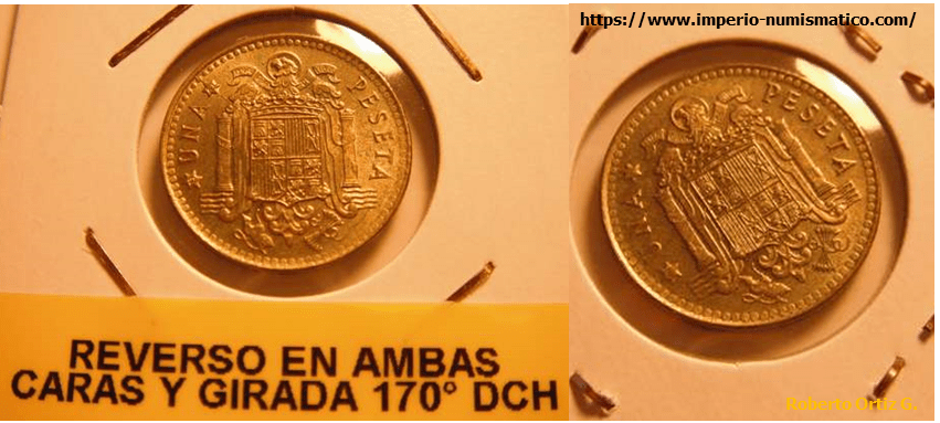A veces aparecen en el mercado monedas con Doble Anverso o con Doble Reverso. Este error, se produce cuando se colocan en la maquina acuñadora, dos cuños correspondientes al reverso o al anverso de la misma moneda. ¿El error en la Ceca, es accidental o a propósito?. Un ejemplo es la moneda a continuación. 1Sigue leyendo «DOBLE REVERSO. ACUÑACION A VOLANTE CON VIROLA.»