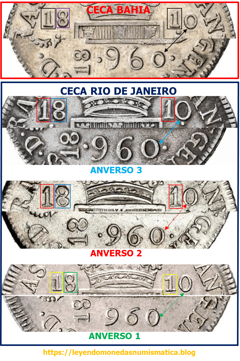 Acuñadas desde 1810, la mayoría de los 960 Reis se acuñaron sobre 8 Reales españoles. Las Cecas brasileñas utilizaron cualquier moneda que se adaptase al diámetro de los 960 Reis. Es una sobreacuñación o reacuñación. Es una Doble Acuñación con cuños diferentes. No se acuña sobre un cospel virgen, sino sobre una moneda ya acuñada.Sigue leyendo «960 Reis. 1810. Joao Príncipe regente. Brasil. Colonial.»