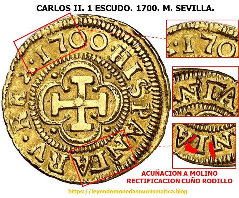 Los ESCUDOS de a 1 de Carlos II. M. Sevilla. Acuñación Mecánica.