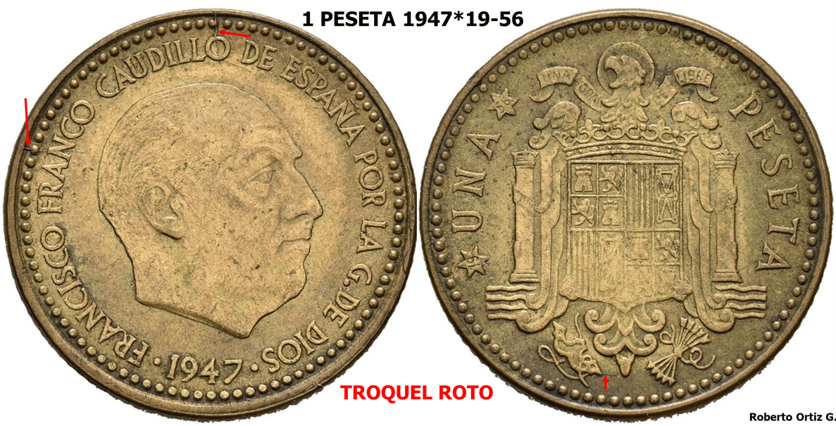 1 PESETA 1947*19-56. ¿Es un ERROR de la FMNT o fue ACUÑADA para cumplir la ley de emision?