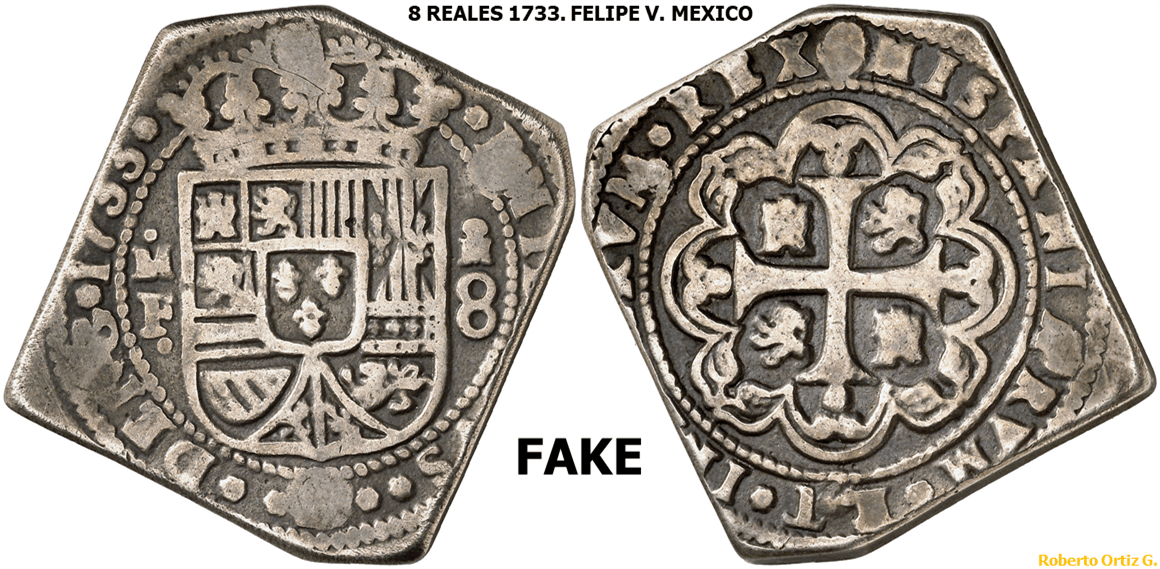 Los 8 Reales Felipe V. México. CLIPER/KLIPPE. son piezas acuñadas a Volante sin virola, pero en las cuales, se utiliza un cospel cortado a tijera, del riel metálico que fue laminado a rodillo. Un ejemplo de estas acuñaciones es la pieza a continuación. Otra pieza del mismo tipo, fue subastada pero no se adjudicó. La piezaSigue leyendo «8 REALES 1733. FELIPE V. MEXICO. FAKE.»