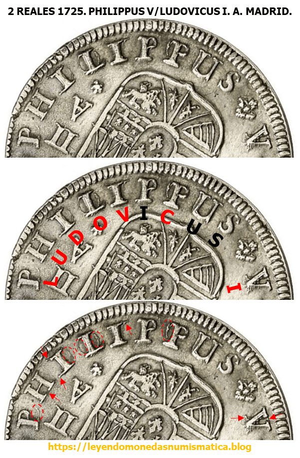Luis I, primogénito de Felipe V y de su primera esposa María Luisa de Saboya, y hermano de Fernando VI, fue rey tras la abdicación de su padre. Su fallecimiento prematuro, con sólo 17 años, consecuencia de la viruela, hizo que su reinado fuera el más corto de la historia de España. 229 días comoSigue leyendo «2 Reales 1725 Felipe V. A. Madrid. Rectificación de monarcas. FELIPE V/LUIS I»