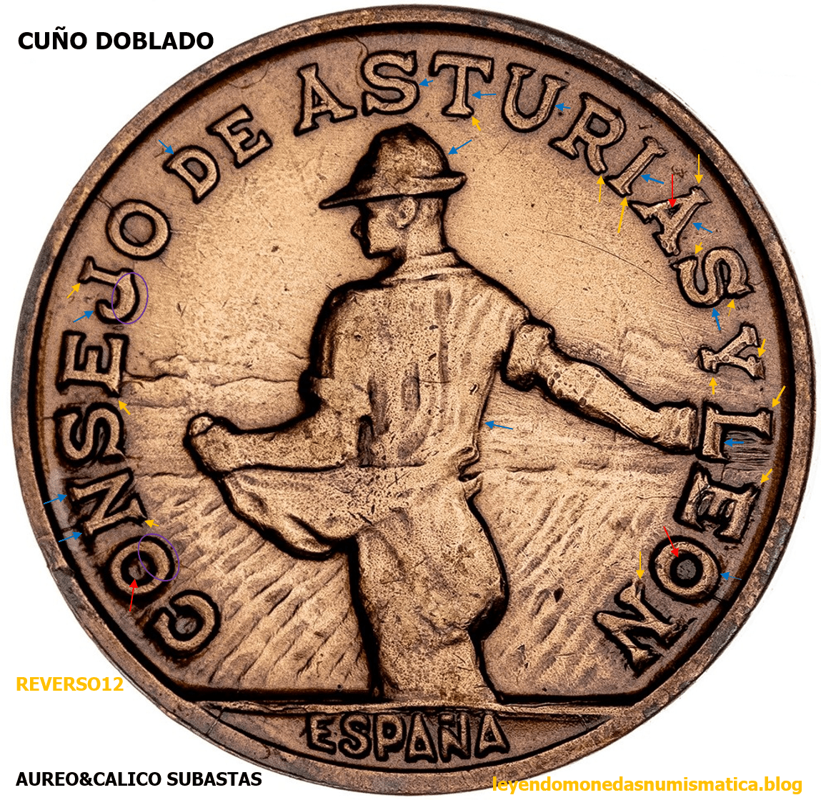 Durante la Guerra Civil Española, el Consejo de Asturias y León, emitió 50.000 monedas metálicas con los valores faciales de, 0,50, 1 y 2 Pesetas. Se desconoce la tirada correspon-diente a cada facial. En el Anverso de las monedas de 1 Peseta, pude leer dos Cuños Doblados. Dos Cuños Doblados distintos. Ver CUÑO DOBLADO/HINCADO (casi) COINCIDENTESigue leyendo «1 PESETA 1937. CONSEJO ASTURIAS Y LEON. Dos CUÑOS DOBLADOS de Anverso.»